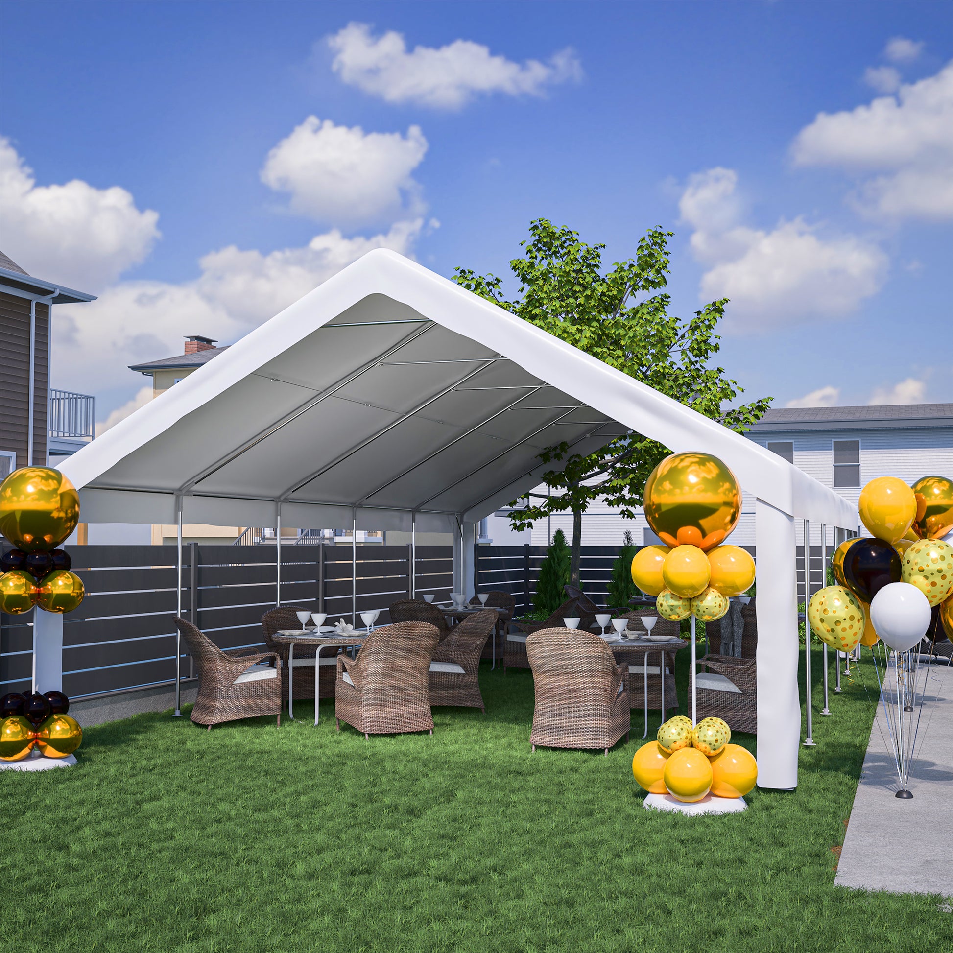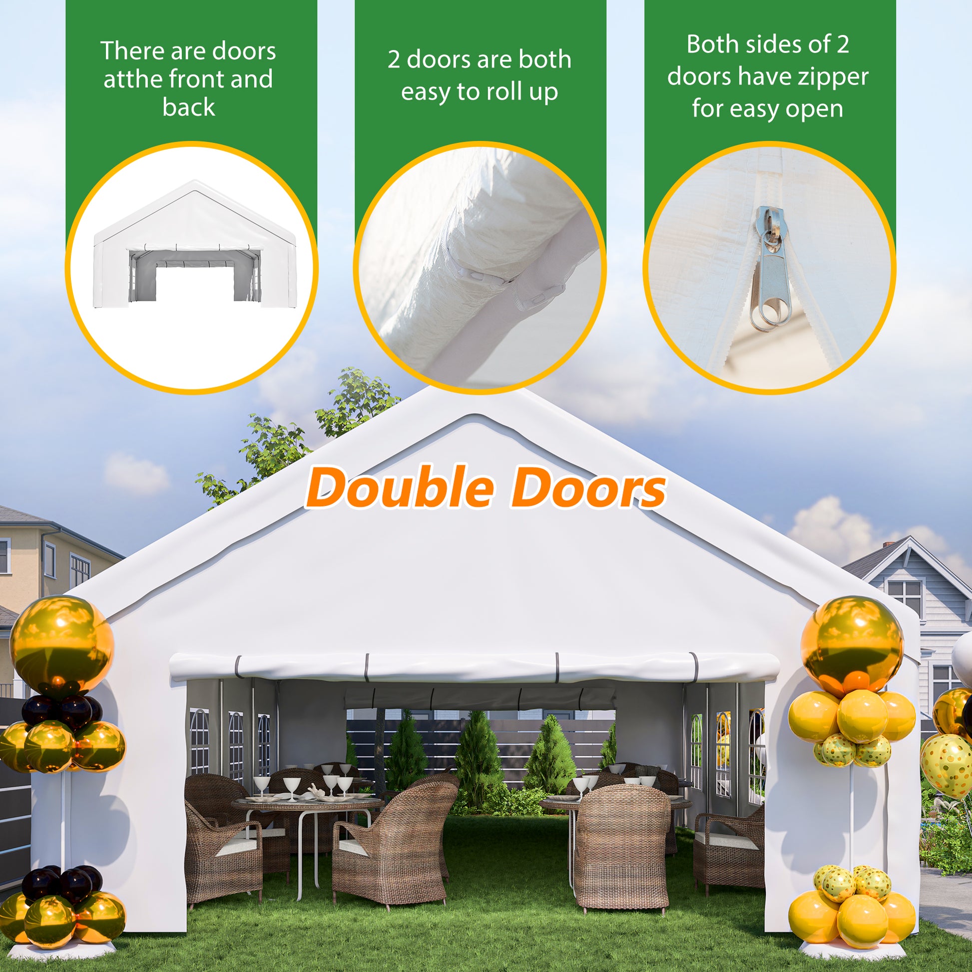 - The party tent is perfect for commercial and entertainment purposes: it is an ideal choice for weddings, parties, barbecues, backyard activities, etc. It will be perfect for any event.