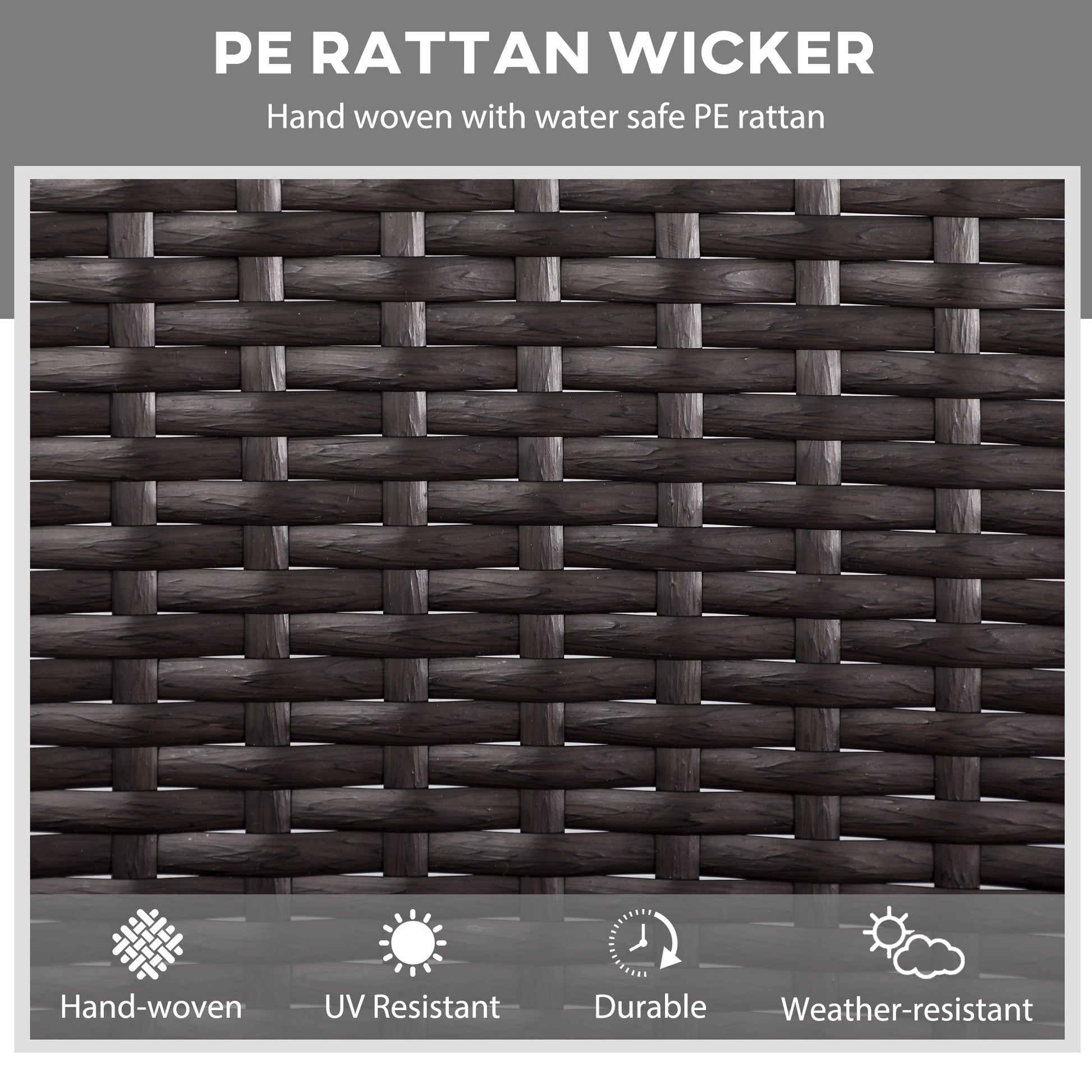 - - Materials: Steel, Polyester, PE Rattan