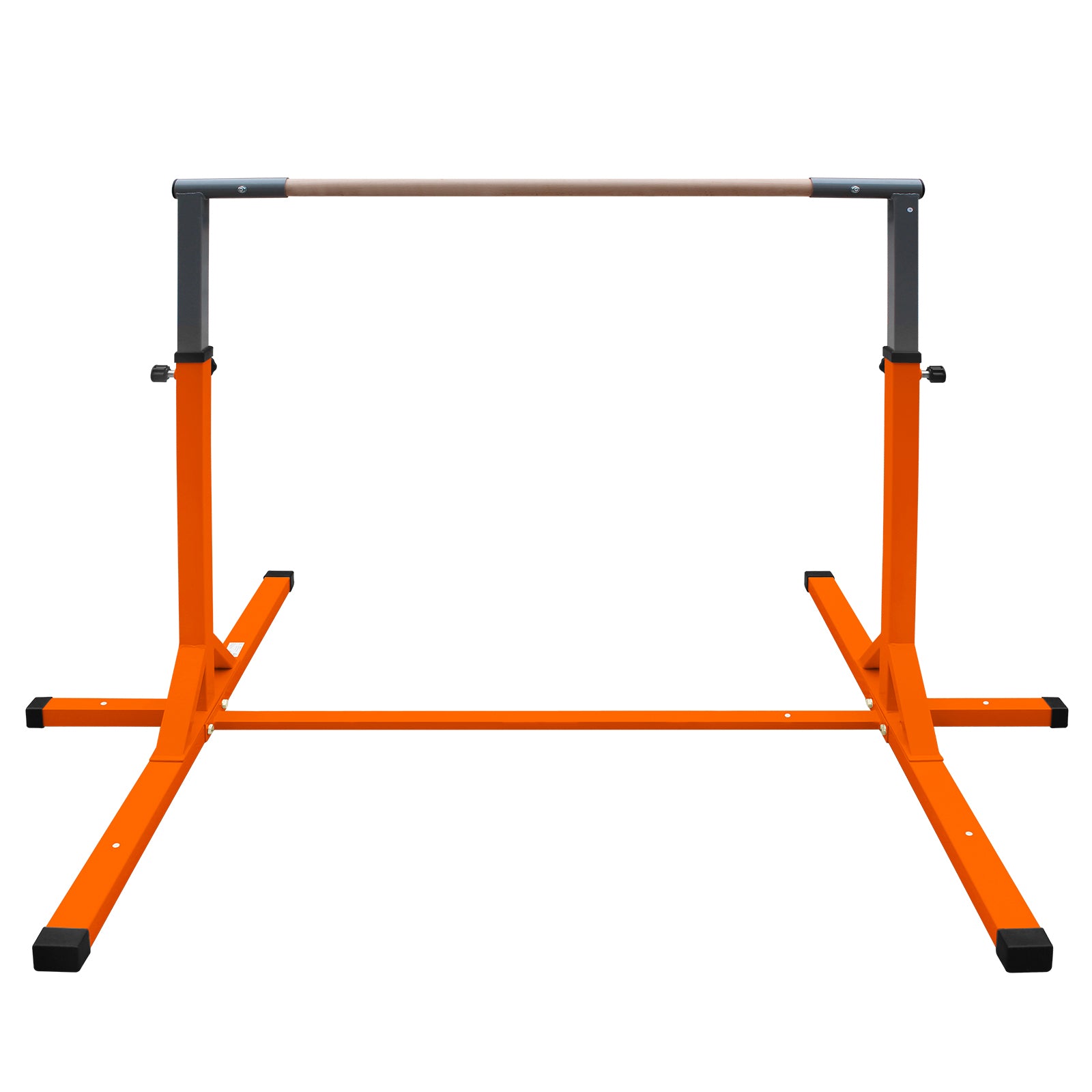 - 【SAFE AND DURABLE】 This gymnastics bar provides stability through 2 flat bars, wide metal base, non-slip cover and corrosion-resistant coating to keep kids safe.