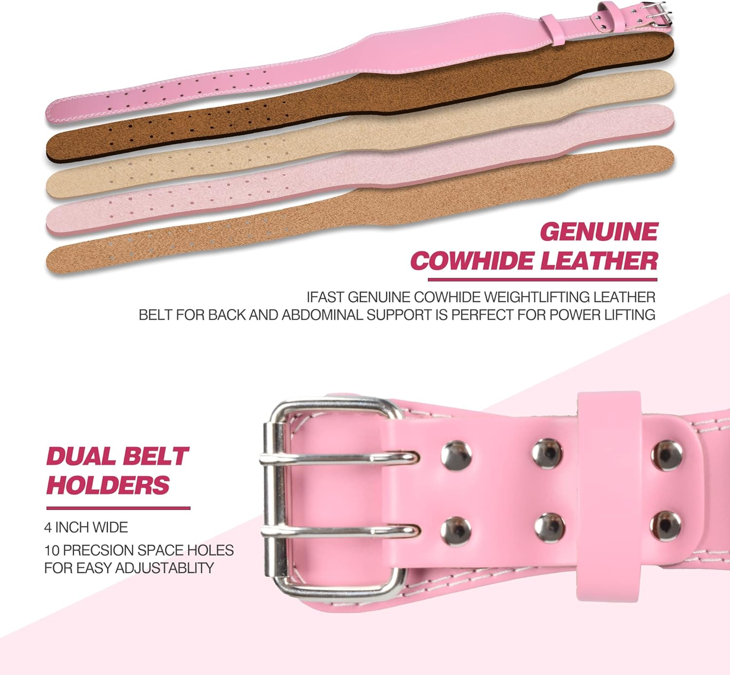 L size Weight Lifting Belt, Leather Weight Lifting Belt for Men and Women with 4 inch Padded Lumbar Support Belt for Weightlifting Deadlift, Cross Training, Power Lifting Workout & Squats Exercise