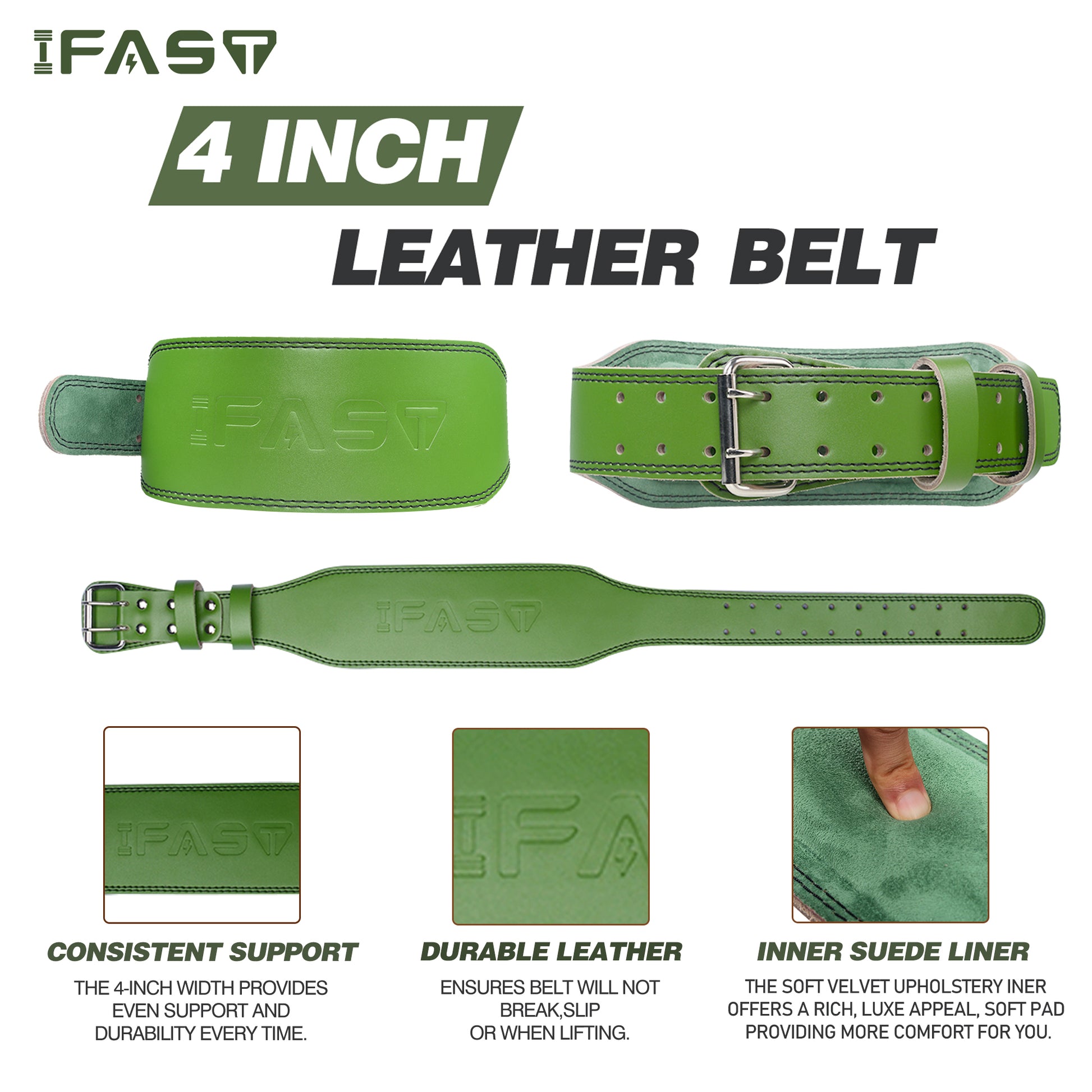 - 【Leather Weight Lifting Belt】IFAST 4” width leather weightlifting belt features genuine premium leather with proprietary manufacturing techniques, delivering the soft and tough, high gloss leather belt on the market. The double-stitched design and dual-pronged buckle of your new premium leather deadlift belt are made to last a seriously long time. The 4” contoured design gives the best feel, flexibility and support for both men and women