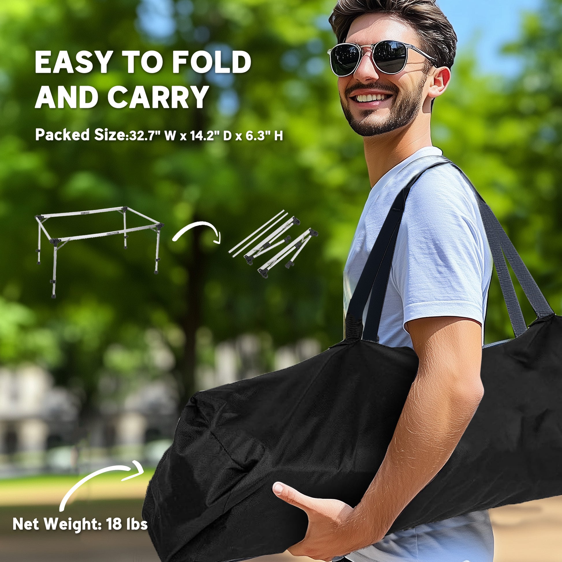 - - Folds to 32.7" W x 14.2" D x 6.3" H for compact storage