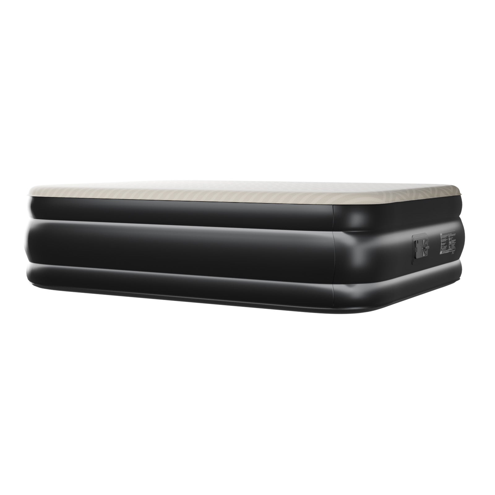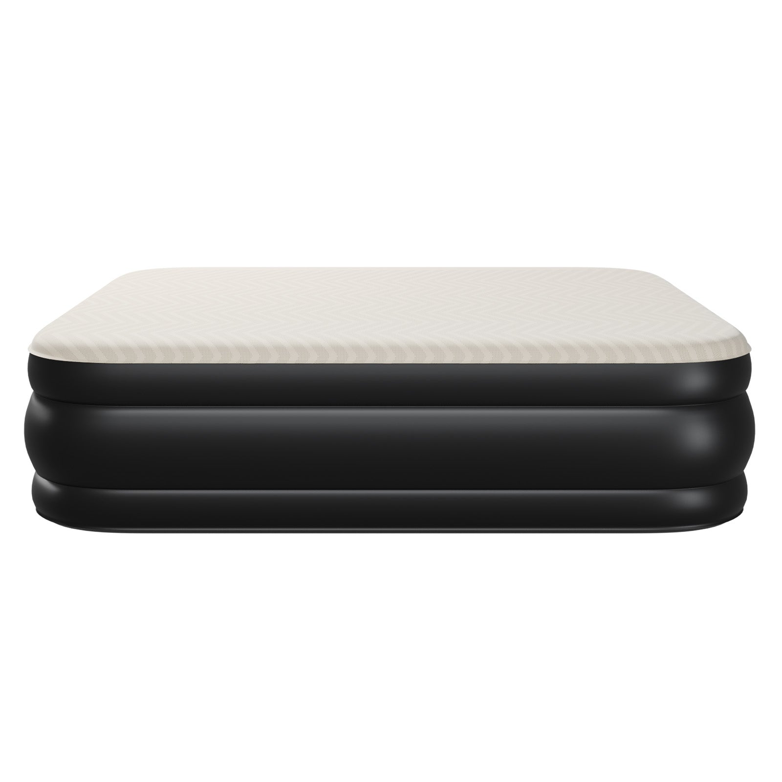 Queen Air Mattress with Built-in Pump, 18in Foam Topper Blow up Mattress, Quick Inflation/Deflation Inflatable Mattress for Home Guests Camping, Beige & Black