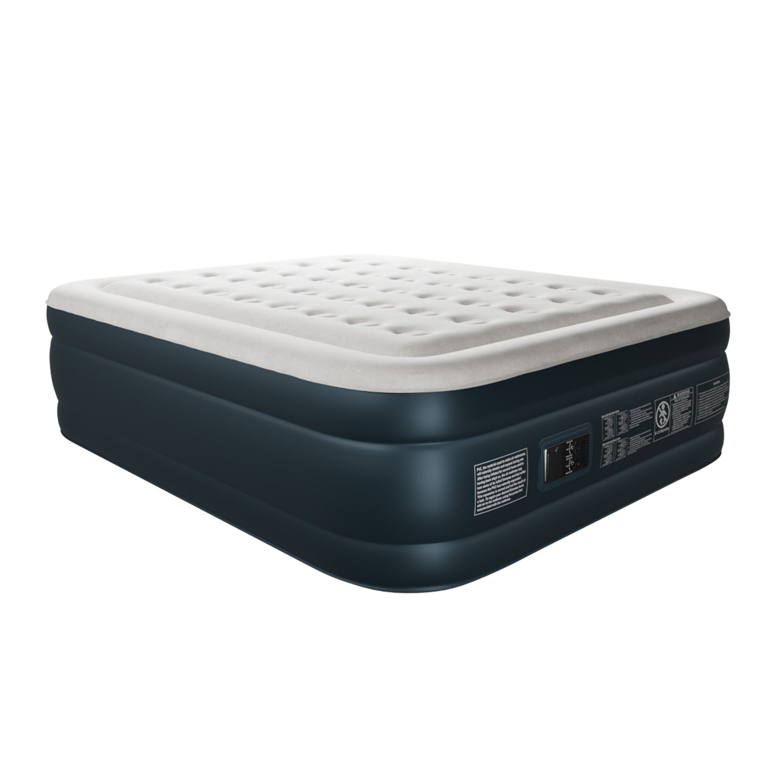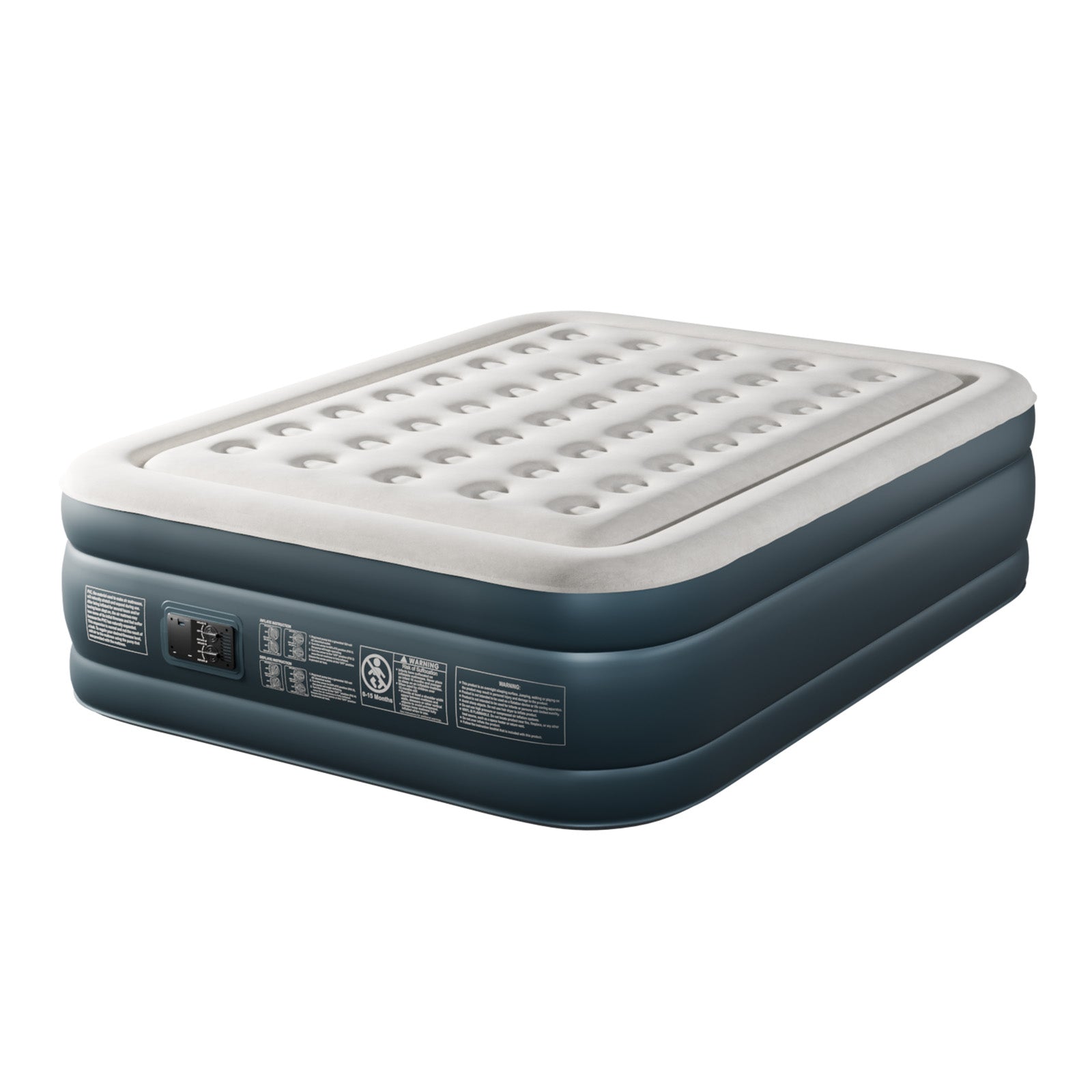 Our Queen Air Mattress is designed to deliver the perfect balance of comfort, support, and convenience. Featuring a powerful built-in electric pump, this inflatable mattress fully inflates in just 4 minutes, making it an ideal solution for overnight guests, weekend getaways, or camping trips. The innovative chamber design evenly distributes weight to prevent sagging, while the soft flocked surface and anti-slip bottom ensure a cozy and stable rest. Crafted with heavy-duty PVC, it's both waterproof and puncture-resistant for long-lasting durability. When not in use, simply deflate and store it in the included carry bag for easy storage and portability.