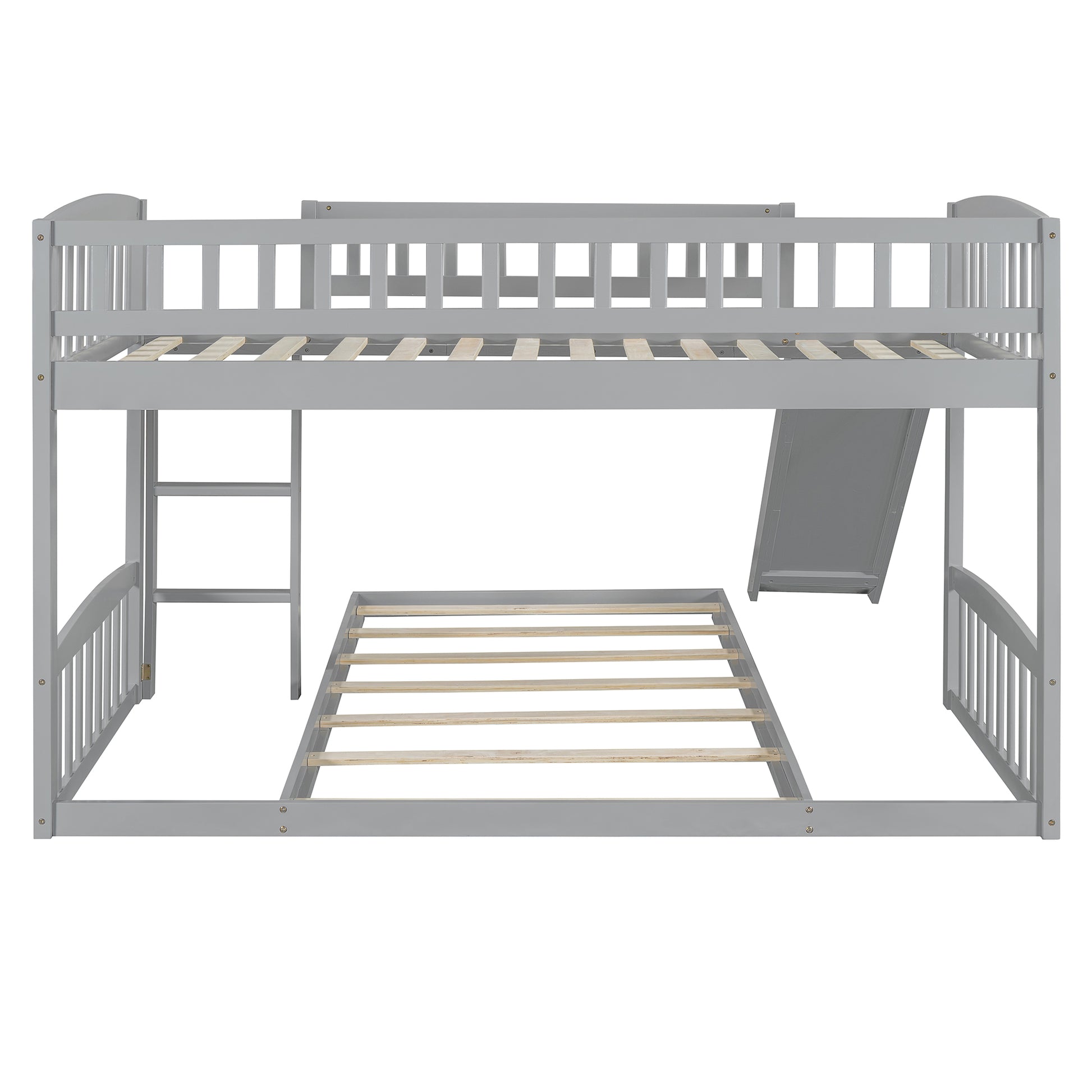 Twin Over Twin Bunk Bed with Slide and Ladder, Gray