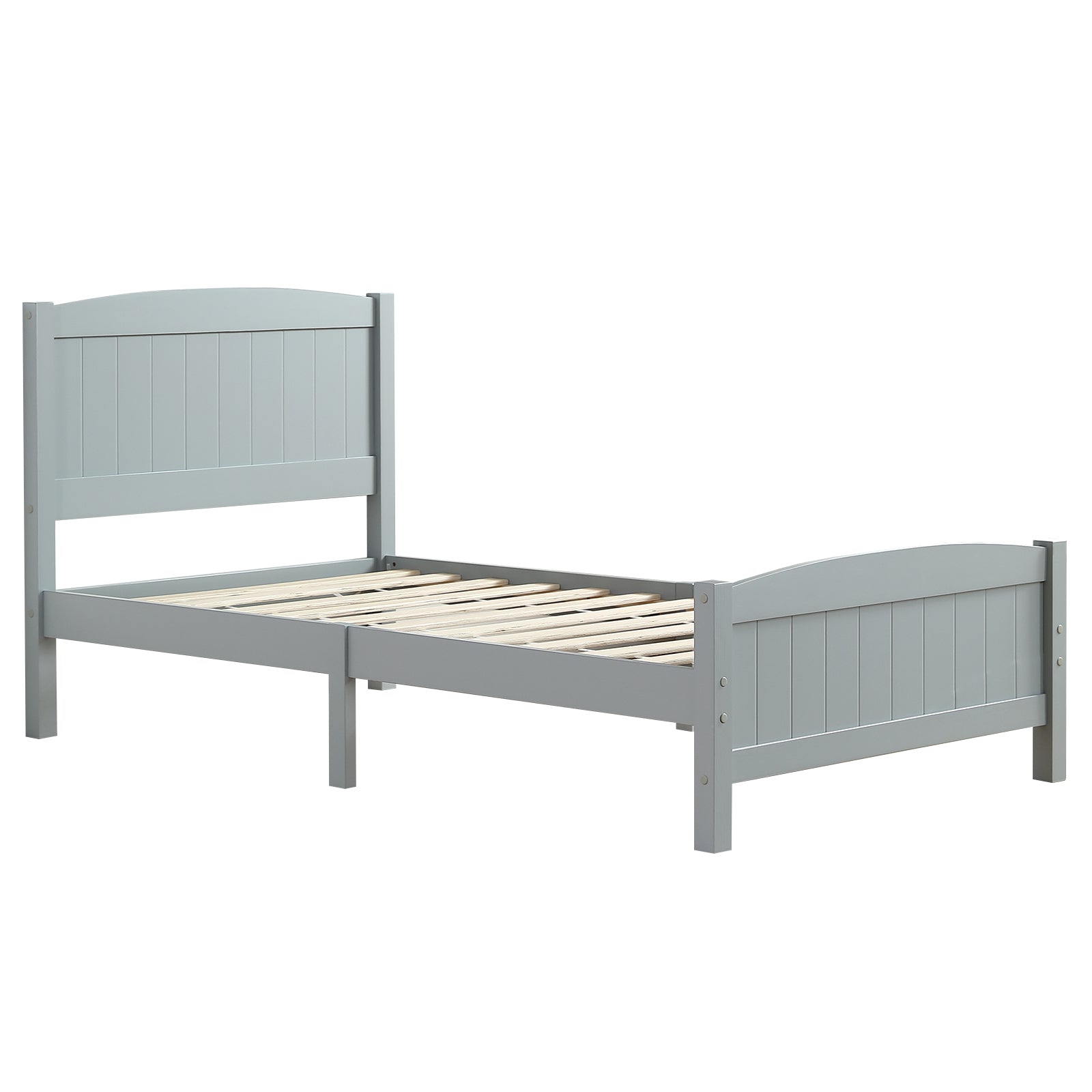 Twin Pine Single-Layer Core Vertical Stripe Full-Board Curved Bed Head With The Same Bed Foot Wooden Bed Grey