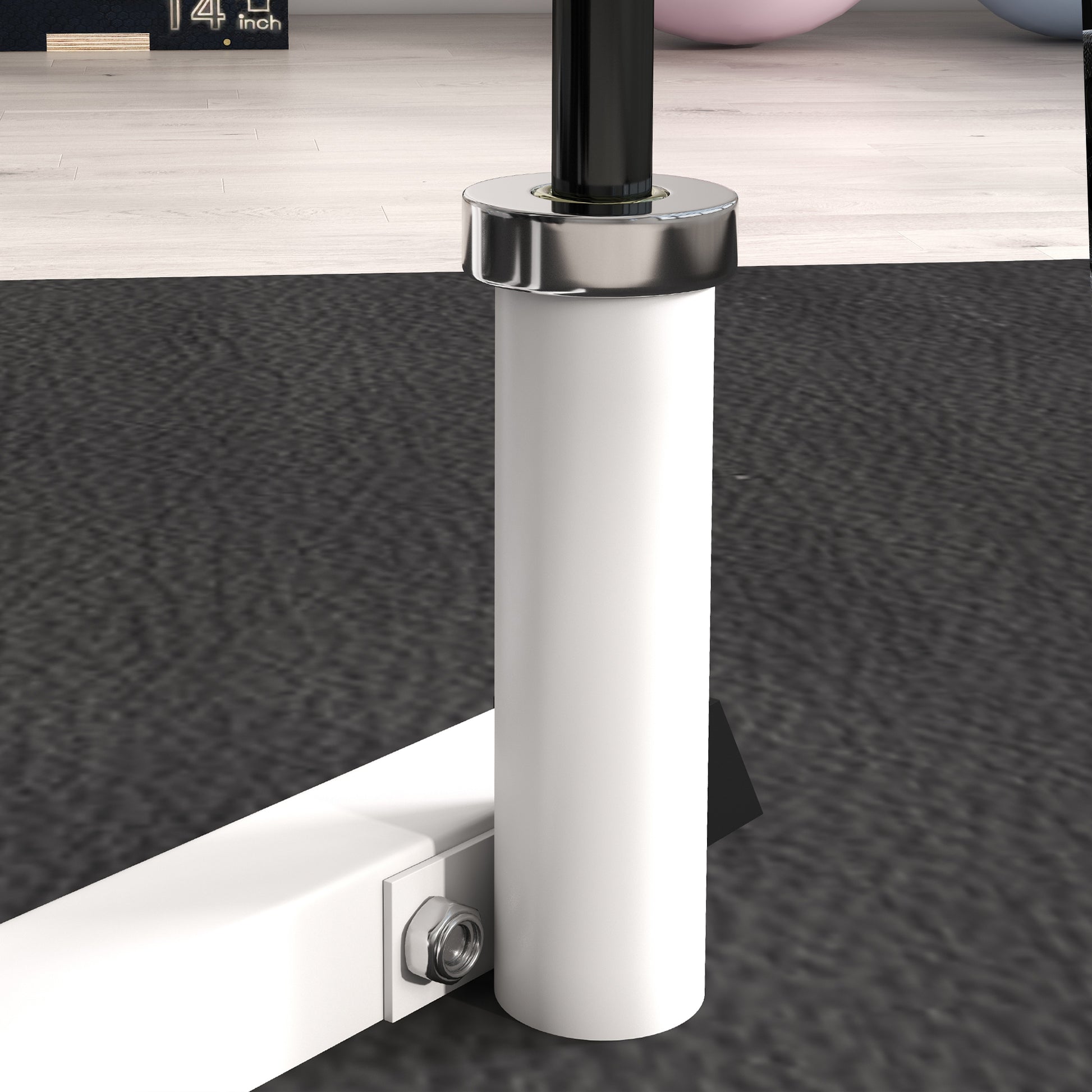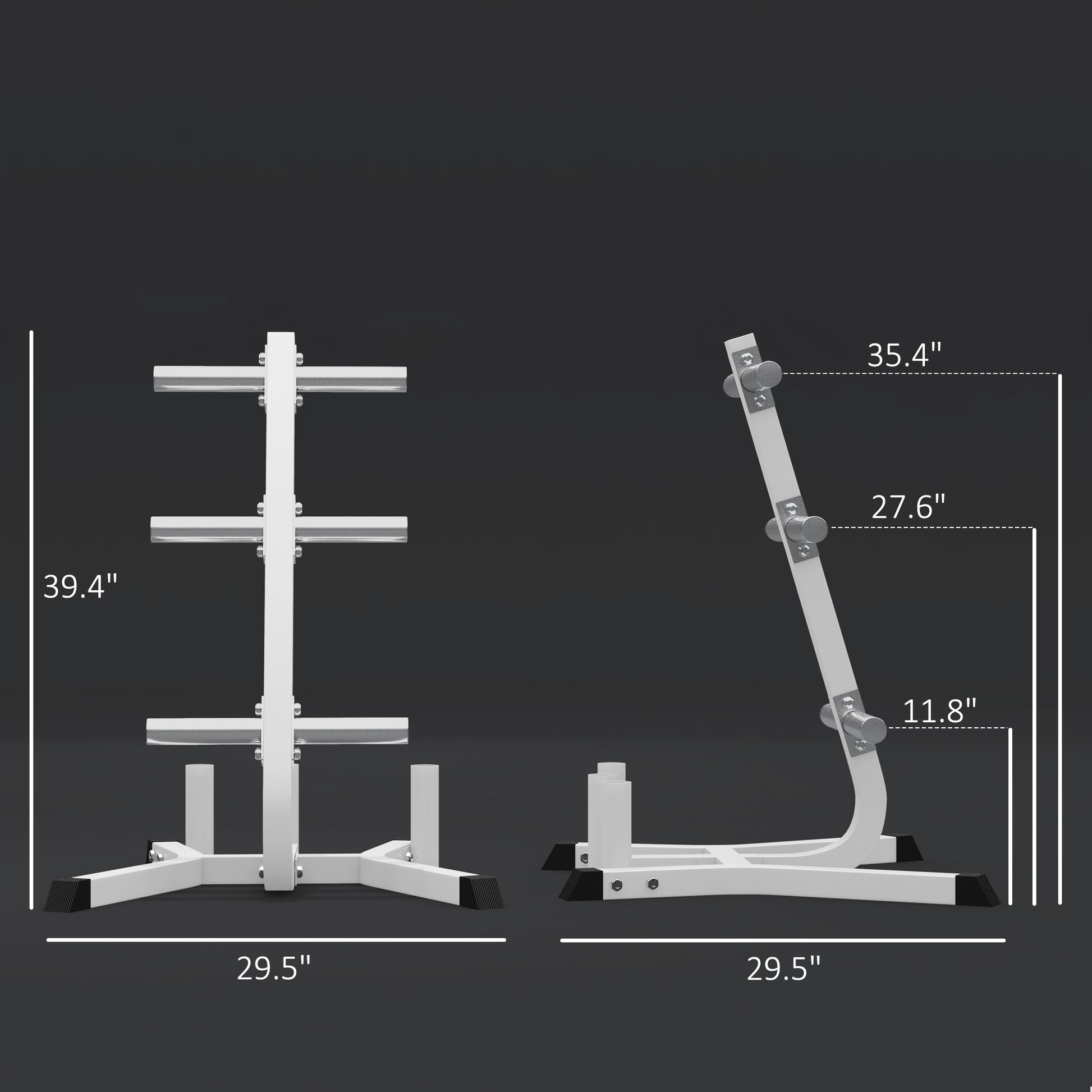 - - Six plate posts and three barbell bar holders for organized storage